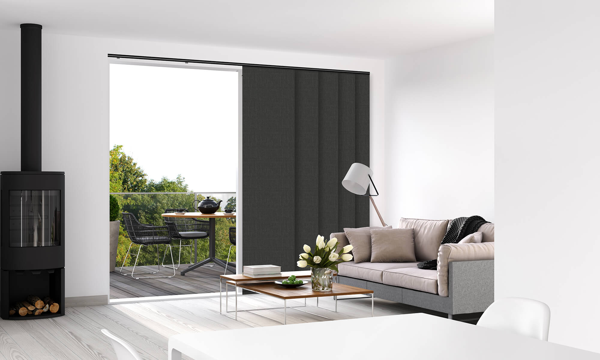 Panel Glides are an ideal shade solution for sliding doors as well as large floor to ceiling windows and will provide any room with a sophisticated luxurious look. The wide, sliding panels of fabric can be split controlled from the centre, or stack to either side. The Panel Glide is easy to use and is operated with a child safe wand. With a broad range of Fabric Collections and light filtration options to choose from, our Panel Glides will provide an excellent shade solution that will compliment your home or business.